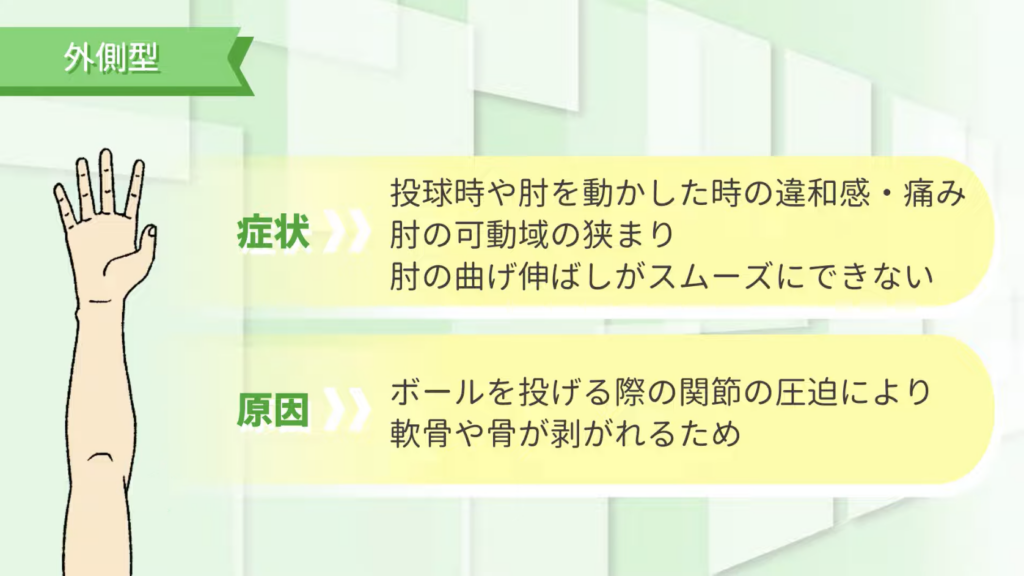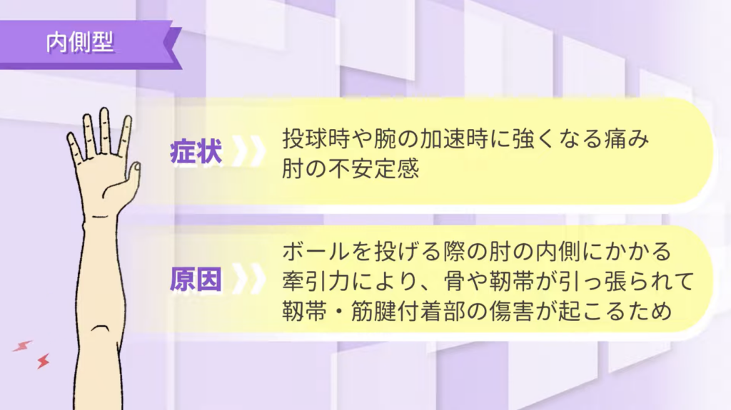 野球肘は大きく「内側型」と「外側型」に分かれます。