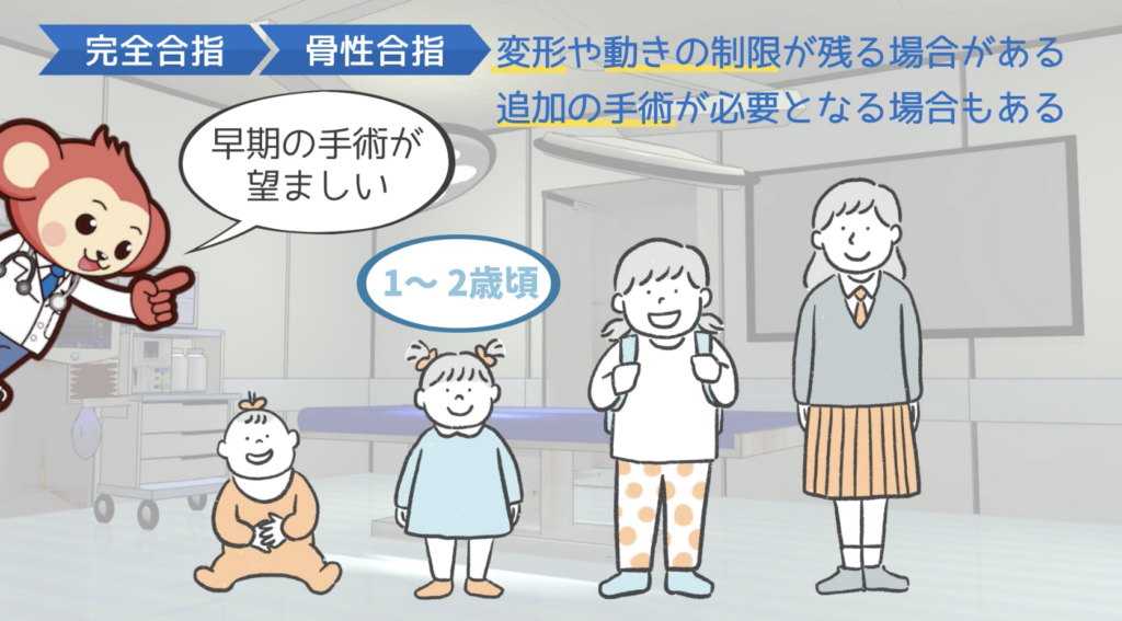 特に骨性合指では、複数回の手術が必要になることもあります。